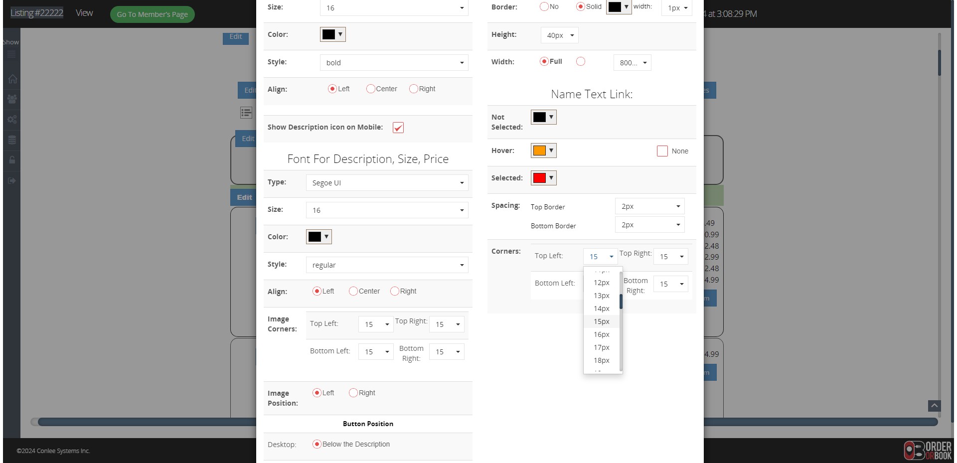 Click on "15px"